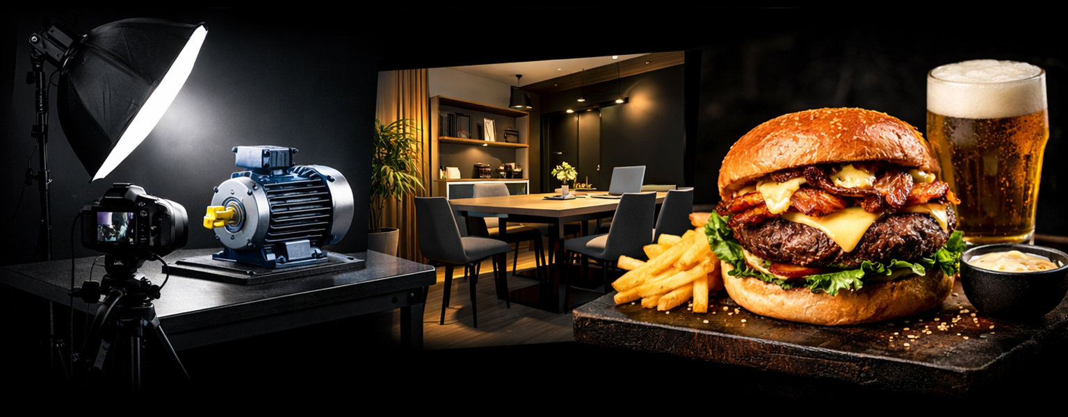 Conte com direção de cena e entrega pronta para anúncios, cardápios, e-commerce e redes sociais.