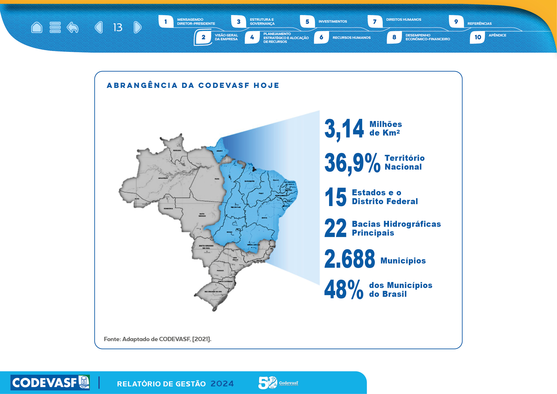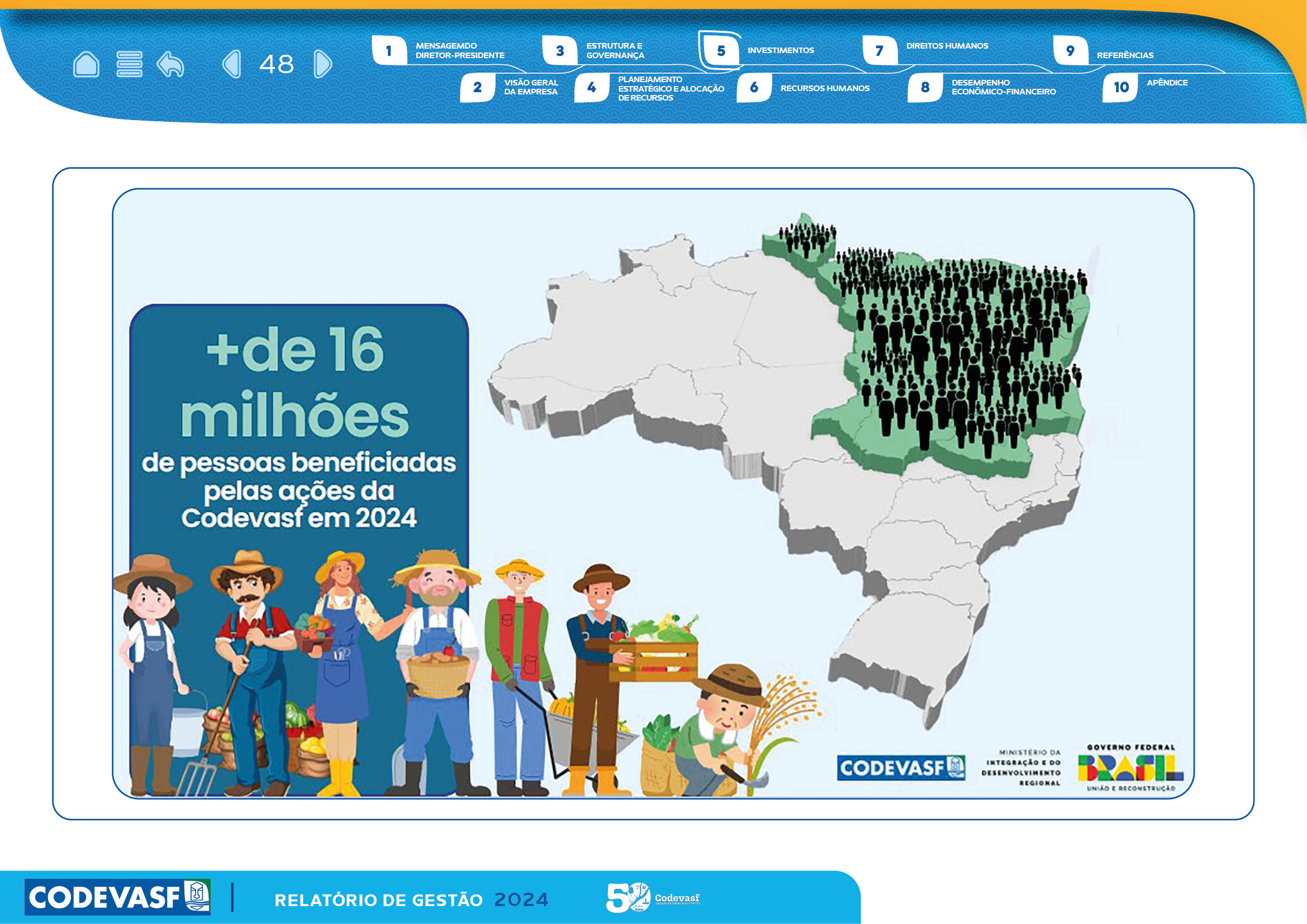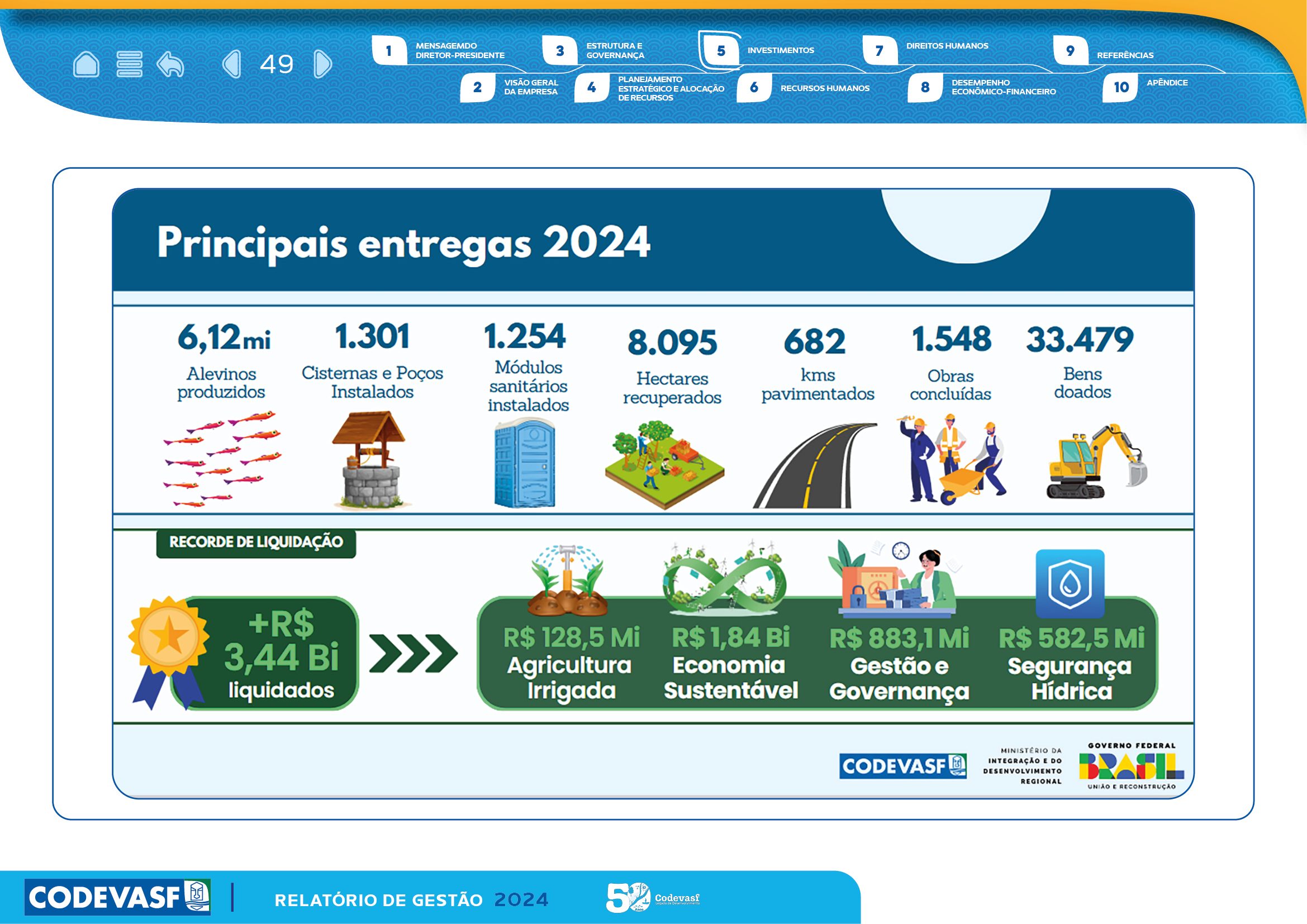 Com estrutura visual clara, recursos de interatividade e uso estratégico de gráficos, mapas e infográficos, o relatório facilita a compreensão das entregas da CODEVASF, reforçando transparência, governança e compromisso com o desenvolvimento regional.