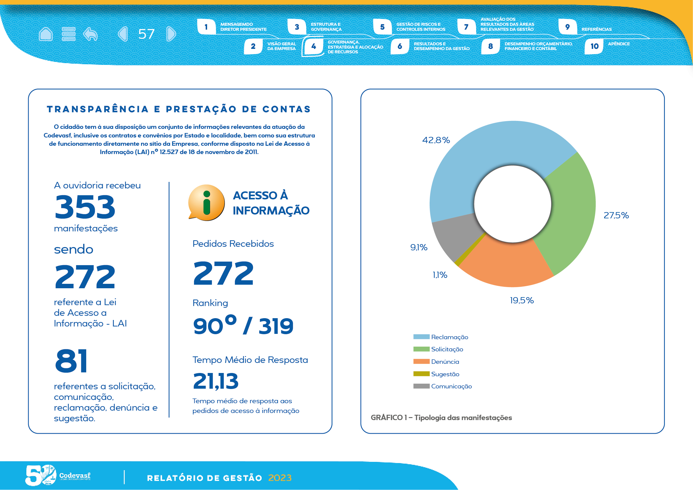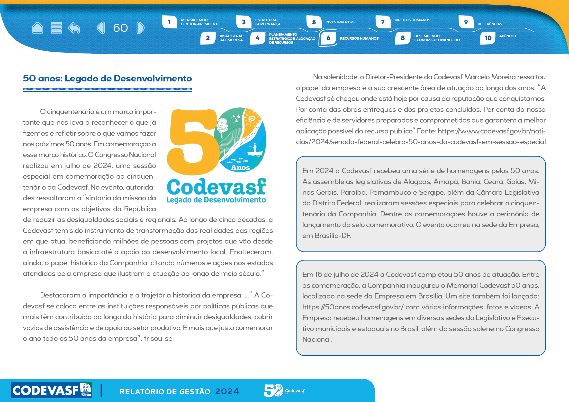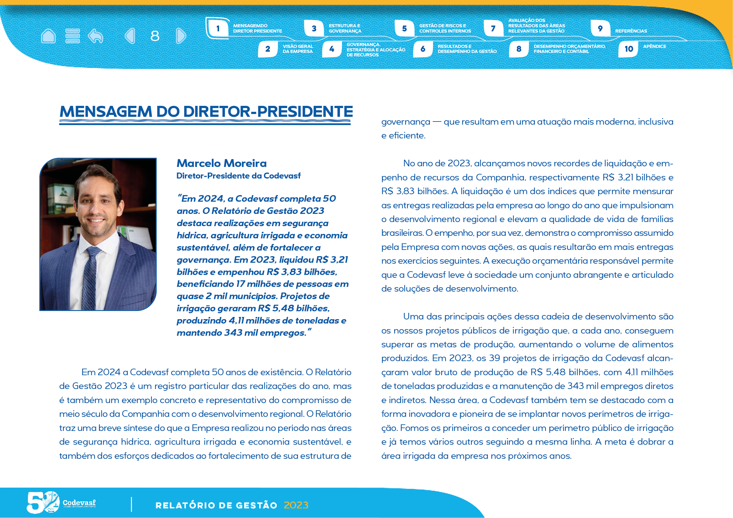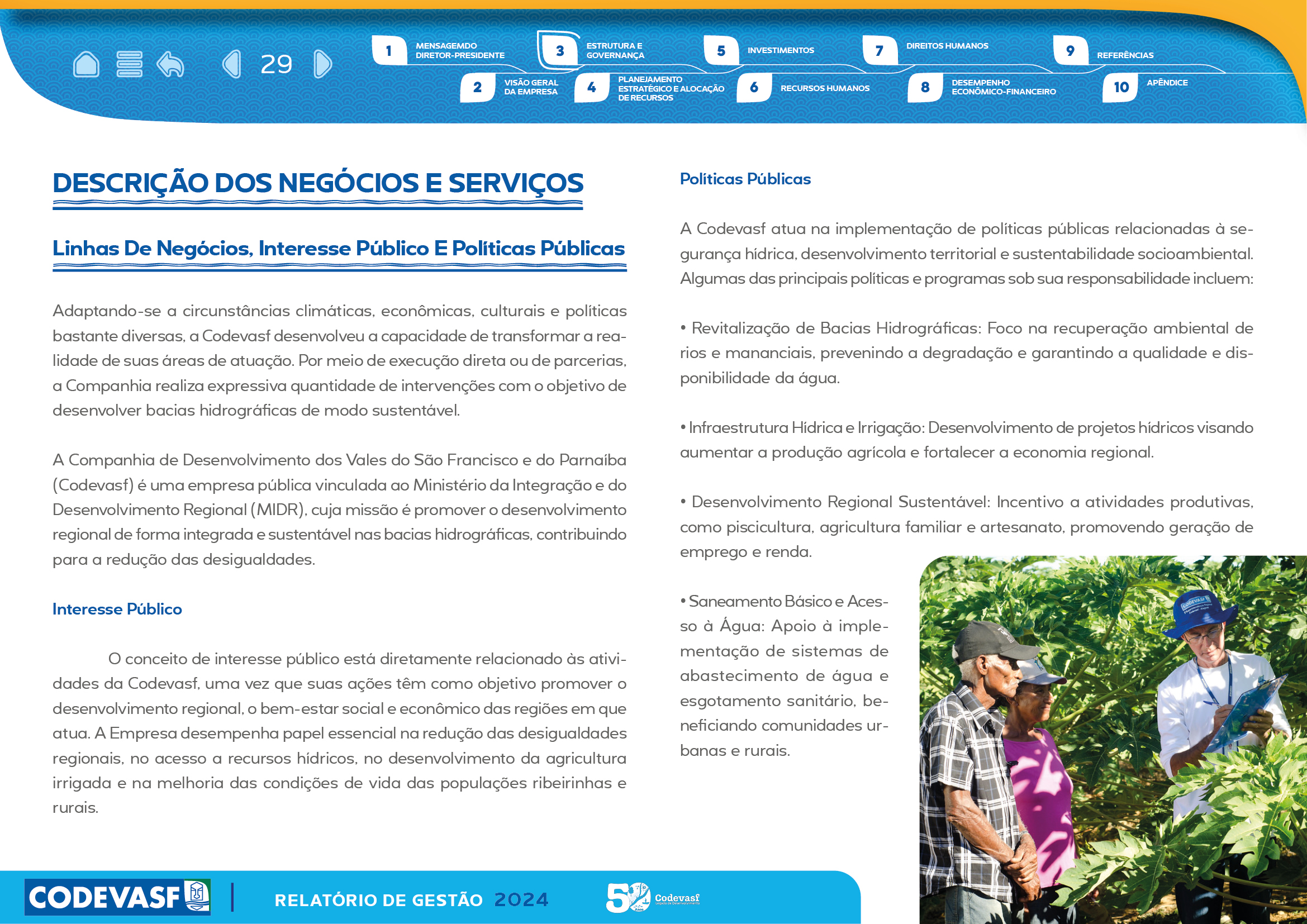 Com estrutura visual clara, recursos de interatividade e uso estratégico de gráficos, mapas e infográficos, o relatório facilita a compreensão das entregas da CODEVASF, reforçando transparência, governança e compromisso com o desenvolvimento regional.