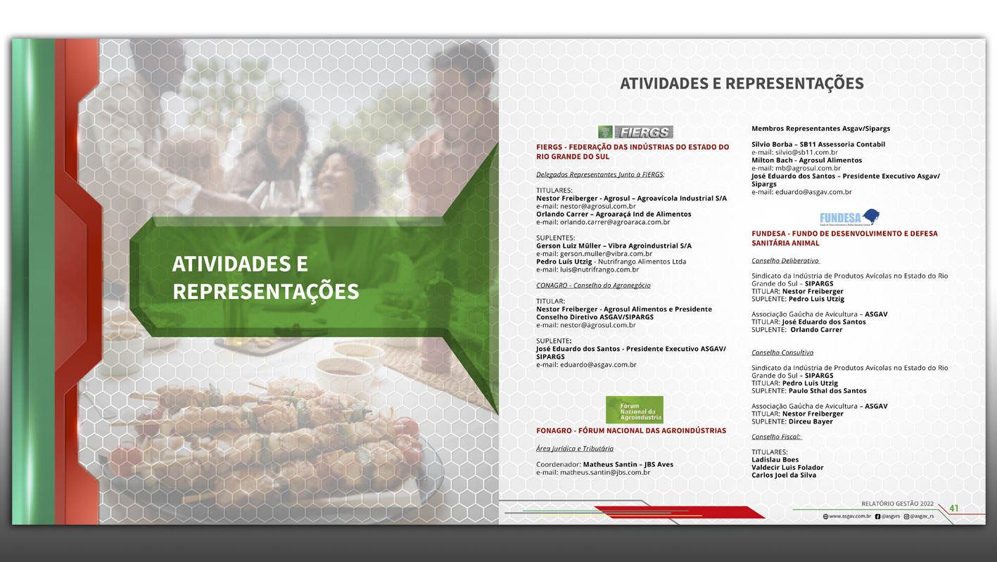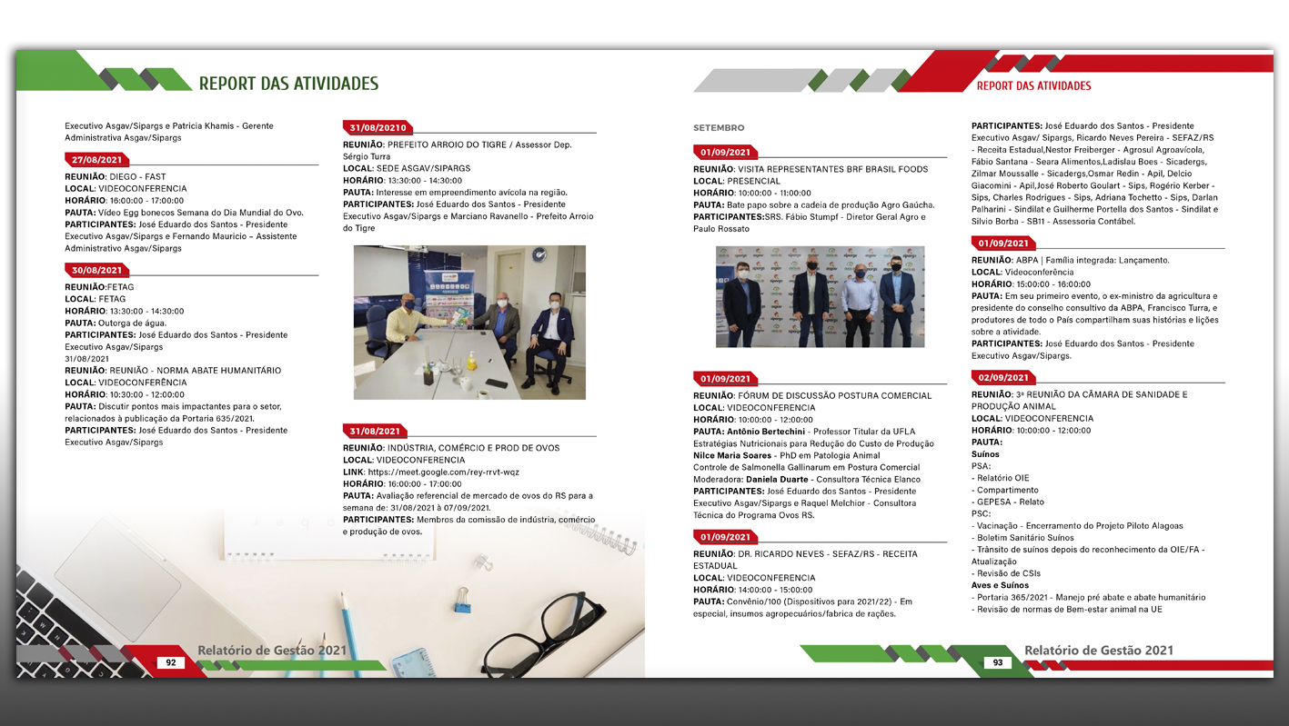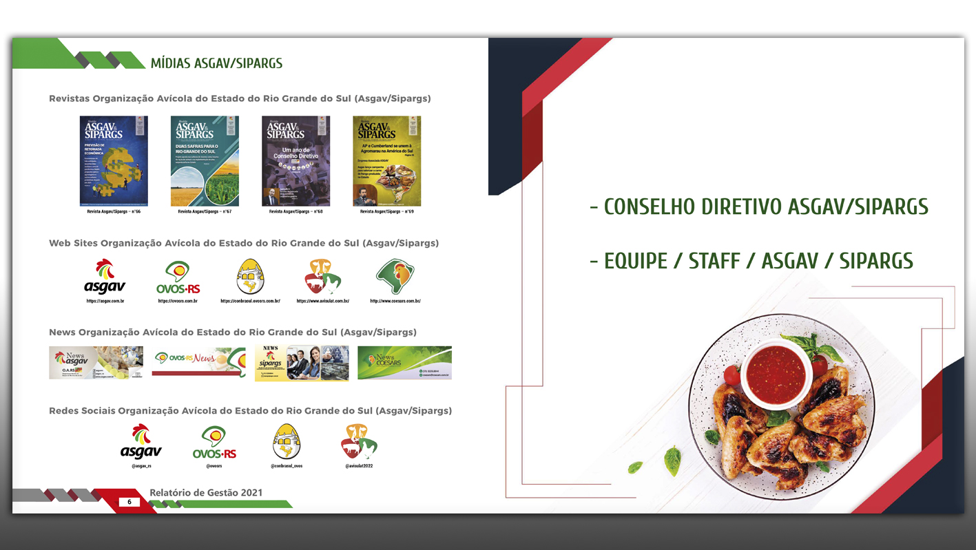 O Relatório de Gestão da ASGAV é um documento estratégico que registra, de forma clara e organizada, as principais ações, projetos e resultados da Associação Gaúcha de Avicultura ao longo do período. Nele, são apresentadas as iniciativas desenvolvidas em prol da avicultura gaúcha e brasileira, incluindo atuação institucional, defesa setorial, ações técnicas, projetos de sustentabilidade, comunicação, eventos e parcerias com entidades públicas e privadas.